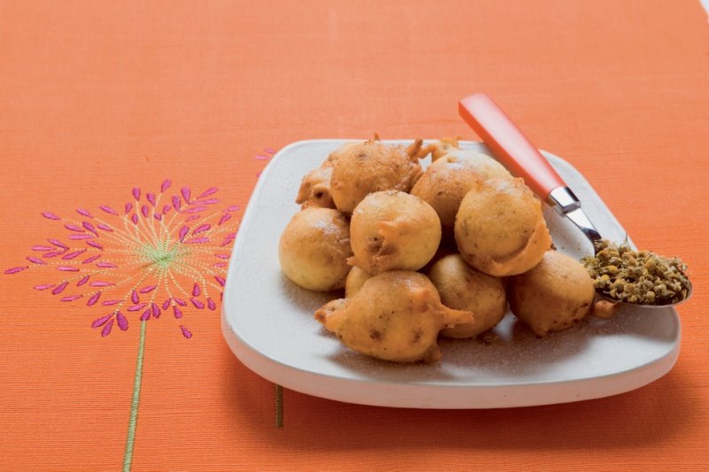 In una larga padella scaldate abbondante olio, con un cucchiaio prendete un po’ di composto alla volta, friggete, con la paletta bucata ritirate le frìtulis quando sono leggermente dorate, asciugatele su carta assorbente.