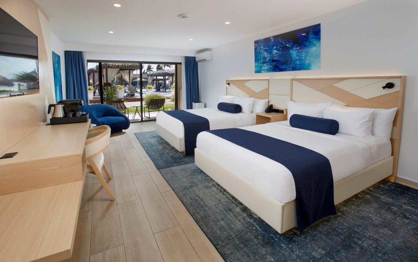 Le sistemazioni, 265 in totale, offrono una varietà di soluzioni che si adattano a diverse esigenze, dalle camere con vista giardino fino alle suite fronte oceano. Le Gardenview, Poolview e Oceanview si distribuiscono tra edifici di diversa altezza e si affacciano rispettivamente su giardini, piscine o mare, mentre le Beachside e Oceanfront Lanai avvicinano ulteriormente alla spiaggia. Le Oceanfront Junior Suites e le Two Bedroom Oceanfront Suites rappresentano le soluzioni più ampie e articolate, con spazi pensati anche per soggiorni familiari. Per tutte le tipologie, balconi o patii arredati permettono di vivere appieno il clima e la luce dell’isola.