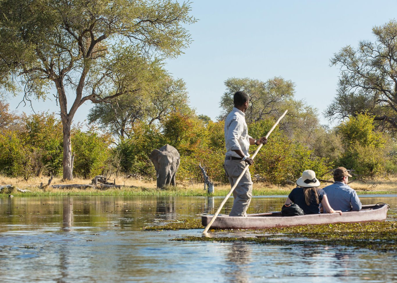 La giornata si apre in silenzio, a bordo di un mokoro: la tradizionale canoa scivola tra i canali del Delta, dove si riflettono ninfee, papiri e stormi di uccelli. L'acqua calma svela scenari intimi e incontaminati, lontani da qualsiasi interferenza. Nel pomeriggio, una camminata nel bush guidata da esperti tracker offre l'opportunità di concentrarsi su dettagli spesso trascurati: impronte nella sabbia, piante medicinali, comportamenti animali. La sera si chiude con un falò e racconti sotto le stelle.