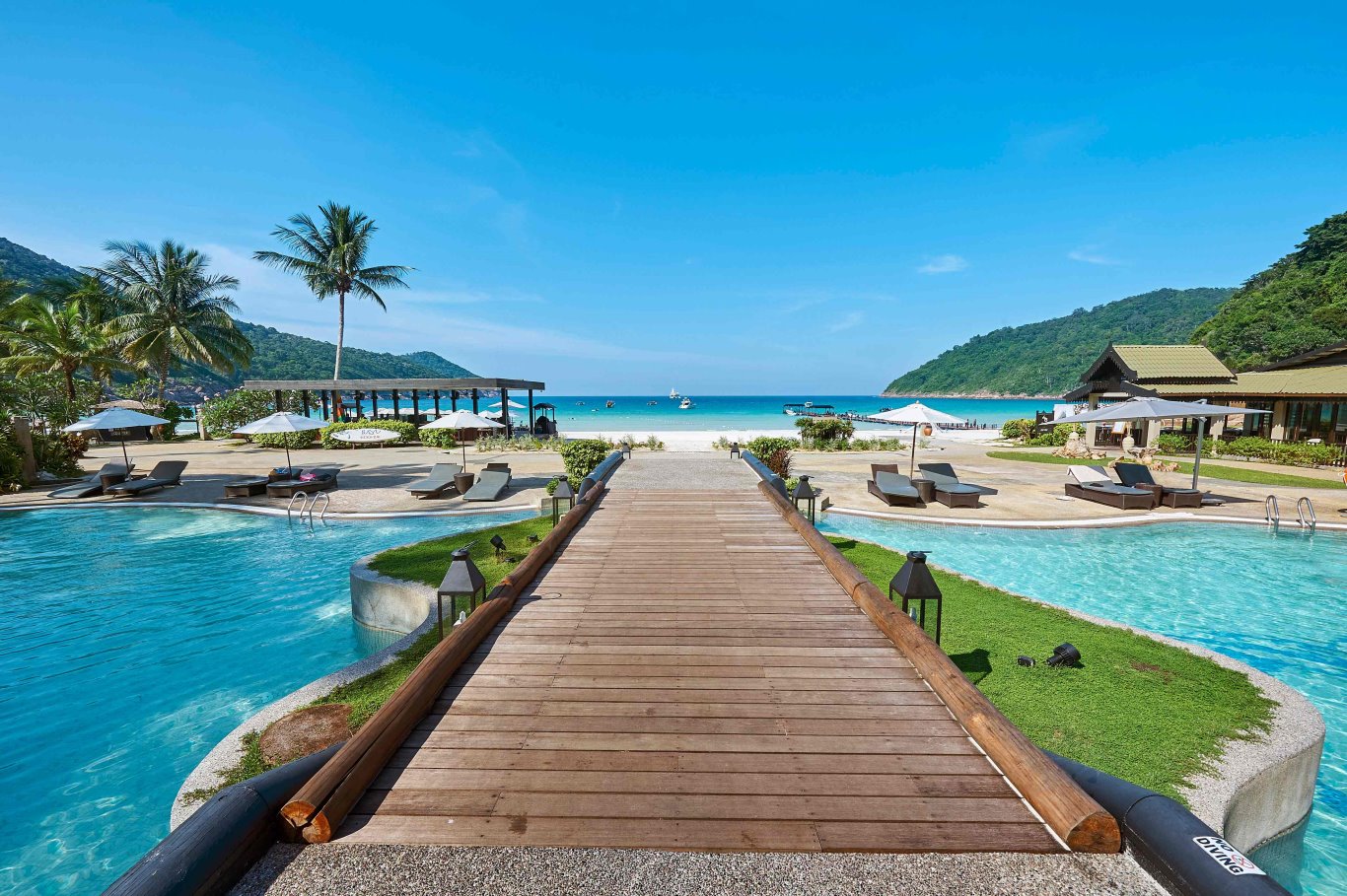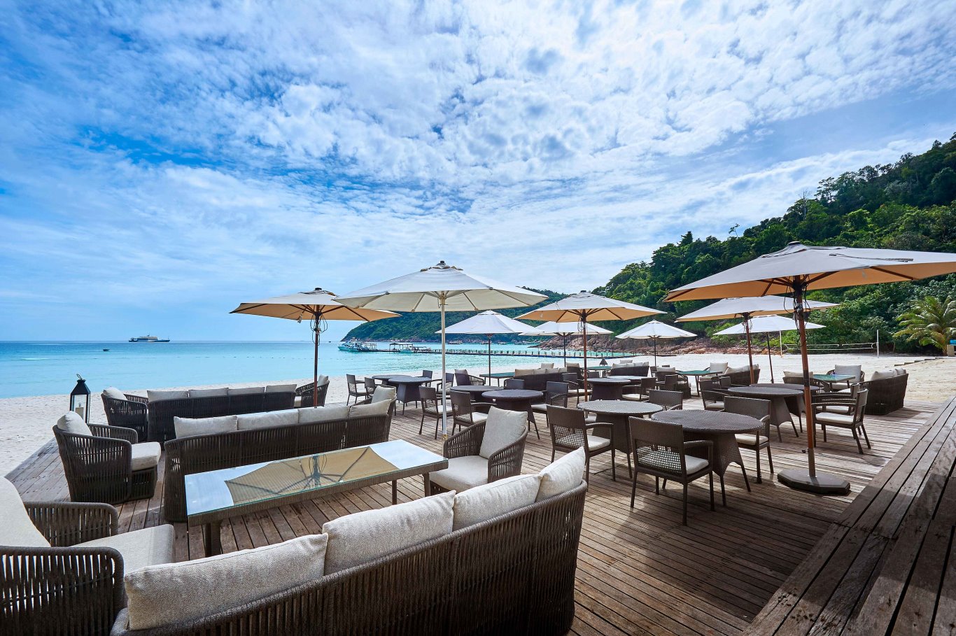 Il The Taaras Beach & Spa Resort sorge sull’isola di Redang, nella costa nord-orientale della Malesia, in un contesto naturale caratterizzato da acqua turchese e spiagge di sabbia bianca. Situato sulla costa dell’isola più grande dell’arcipelago, la struttura si affaccia direttamente sulle acque del Mar Cinese Meridionale e si integra con la vegetazione tropicale circostante, offrendo un ambiente in cui la natura domina il paesaggio e accompagna ogni fase del soggiorno.