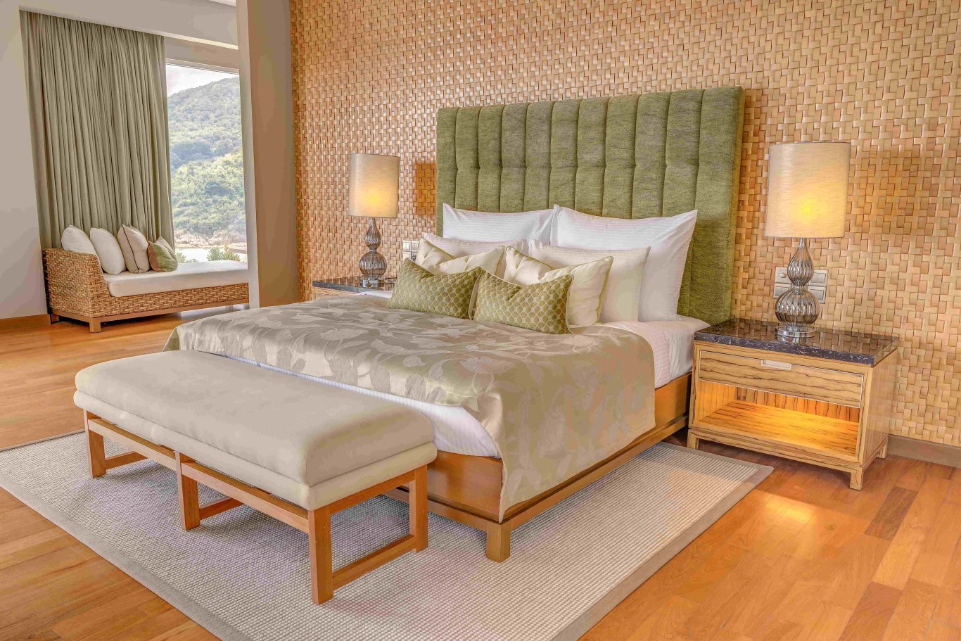 Le sistemazioni del resort comprendono una varietà di camere e suite dallo stile elegante, pensate per rispondere alle diverse esigenze degli ospiti. Le Garden Suite si sviluppano su due livelli e offrono spazi armoniosi immersi nel verde. Le Cliff Bay Suite e le Cliff Premier Suite sono situate nella zona collinare del resort, con viste panoramiche sulla baia e sull’oceano, mentre le Ocean Front Suite e l’Ocean Front Master Suite si affacciano direttamente sulla spiaggia, consentendo di ascoltare il suono delle onde a ogni risveglio. Per chi desidera una dimensione ancora più esclusiva, il The Taaras Villa è una villa privata di grandi dimensioni posta sulla scogliera, con piscina e palestra privata. Il resort include anche suite e camere come il Two-Bedroom Hillview Deluxe e il Two-Bedroom Bayview Suite, ideali per piccoli gruppi o famiglie che desiderano spazi più ampi, mantenendo comfort e privacy. Tutte le sistemazioni sono arredate con attenzione ai dettagli e dotate di comfort moderni, balcone o terrazza privata e viste che valorizzano il paesaggio naturale circostante.