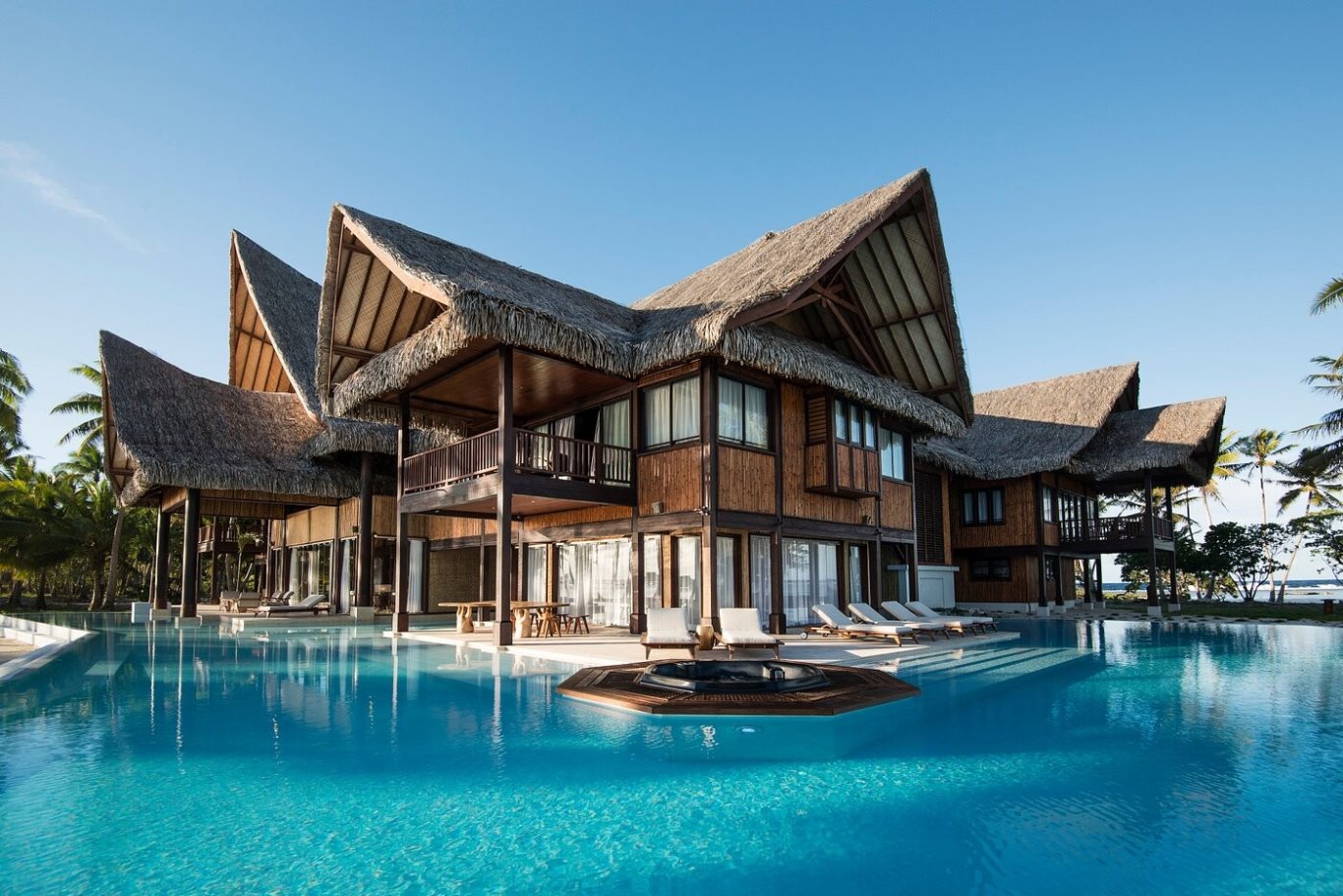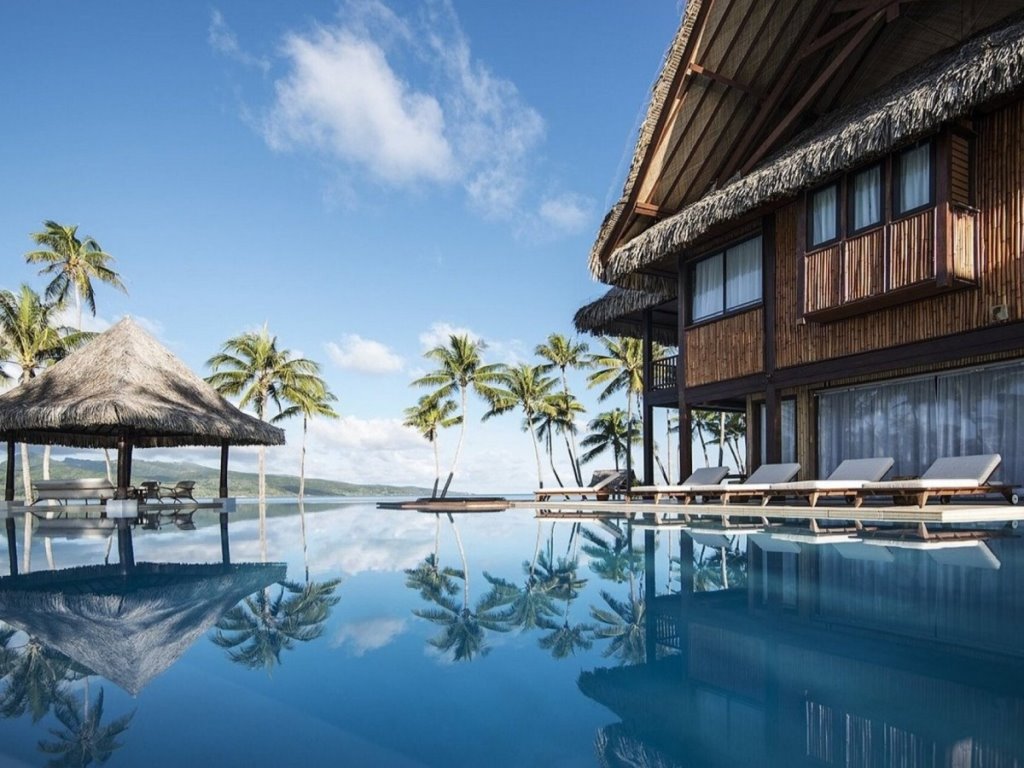 L'esclusività del resort trapela anche dall'architettura delle sistemazioni per gli ospiti, costruite ricorrendo a tradizionali materiali polinesiani e impiegando le tecniche locali di progettazione e realizzazione dei bungalow. Lo stile autoctono si evidenzia ulteriormente nella decorazione degli interni e si compone di tre categorie di bungalow, ognuno arredato secondo le necessità dell'ospite più esigente. I Beach Bungalow dispongono in 50 mq dei principali comfort desiderabili, con un'ampia terrazza con vista sull'oceano e Bora Bora. Una doccia esterna da spiaggia offre il giusto angolo per rinfrescarsi. I Beach Suite si sviluppano su 115 mq e sono l'ultimo ritrovato in fatto di intrattenimento tecnologico, con TV LCD e lettore DVD, accesso a internet. Gli Over Water Bungalow si propongono come santuari del relax, con 70 mq di spazio interno ed un tavolo di vetro che permette di ammirare da breve distanza le variopinte specie di pesci tropicali, attratte dai riflettori inseriti appositamente. La terrazza esterna, parzialmente coperta dal tetto in paglia, è raggiungibile in piroga ed è concepita per distendersi sull'amaca approntata allo scopo. Tutte le sistemazioni hanno: aria condizionata, almeno una ventola per il soffitto, uno schermo con musica e film su chiavetta USB, telefono e connessione internet DSL.