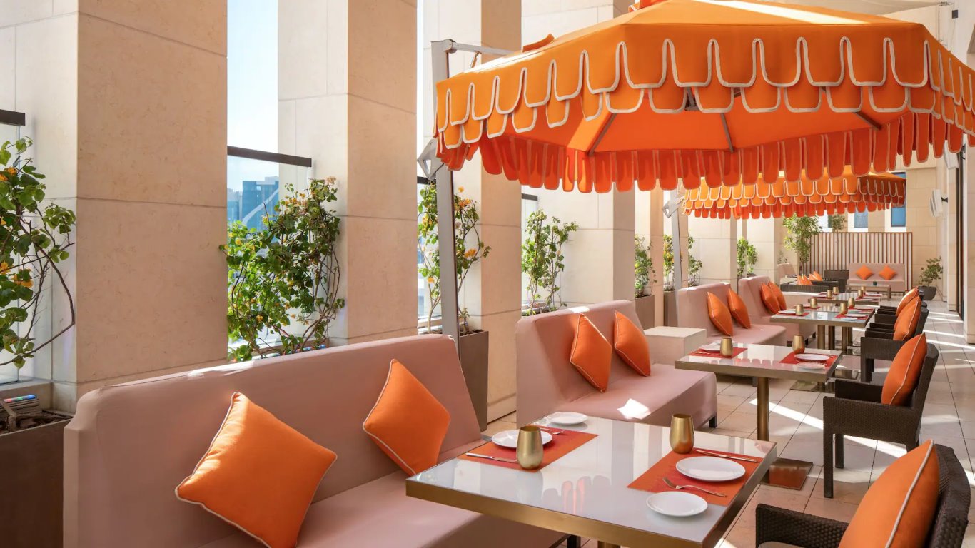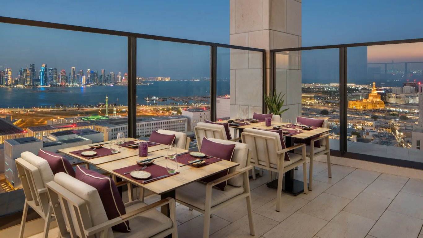 L’offerta gastronomica si articola in spazi distinti e curati. Il ristorante Opus propone una cucina mediterranea contemporanea, servita in ambienti eleganti con possibilità di tavoli all’aperto e sale private. Sora Rooftop è un ristorante di cucina giapponese moderna collocato al 21° piano, caratterizzato da viste panoramiche su Doha e sulla Corniche. Un ulteriore locale, Living Room, ospita piatti di cucina internazionale in un contesto più informale, mentre Anis aggiunge un’alternativa gastronomica con piatti internazionali in un ambiente accogliente. Completano l’esperienza il bar/lounge, ideale per momenti di relax con cocktail e bevande, e il servizio in-room dining attivo 24 ore su 24, che consente di gustare piatti preparati dallo chef direttamente in camera.