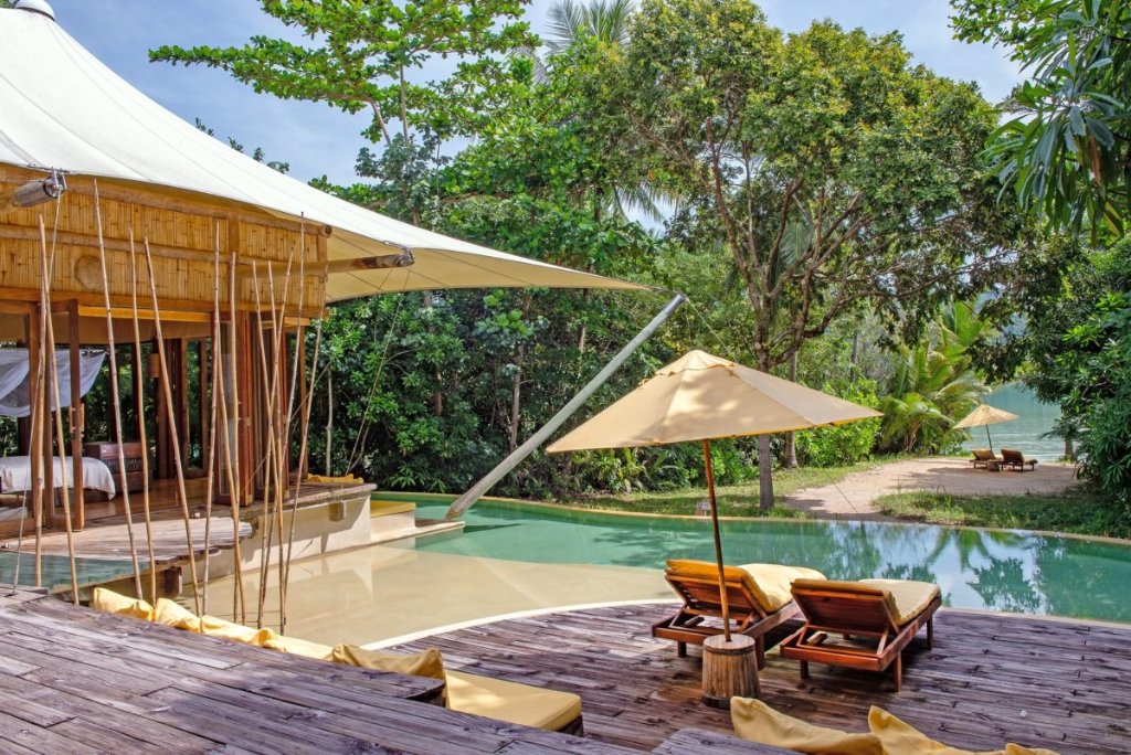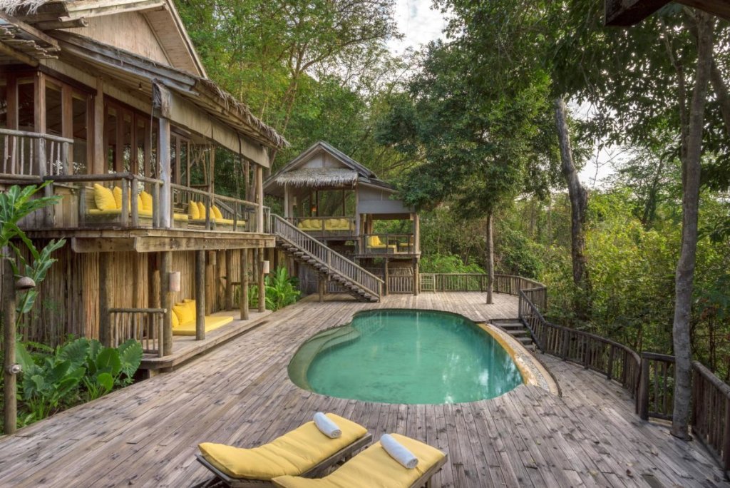 L’incontaminata e selvaggia Koh Kood situata al confine con la Cambogia è la patria di uno dei più lussuosi rifugi della Thailandia, il Soneva Kiri. Immerso in 41 ettari di giardini spettacolari, questo resort è stato costruito attraverso l’utilizzo di metodologie di eco-design e scelte di materiali eco-compatibili per proteggere l’ambiente circostante con cui è in perfetta simbiosi; la plastica qui è bandita. Il resort è ecologico ma tutt’altro che spartano: ogni suo angolo è curato nei minimi dettagli per regalare agli ospiti comfort, lusso e relax oltre ogni aspettativa. L’isola di Koh Kood, quarta per estensione dell’intero paese, è una delle ultime scoperte turistiche con circa il 70% del territorio coperto da foreste pluviali, cascate e spiagge completamente disabitate. Il resort è raggiungibile unicamente con voli privati di circa 40 minuti a bordo di aerei leggeri che partono dall'aeroporto internazionale di Bangkok, e poi un trasferimento in barca di soli 3 minuti.