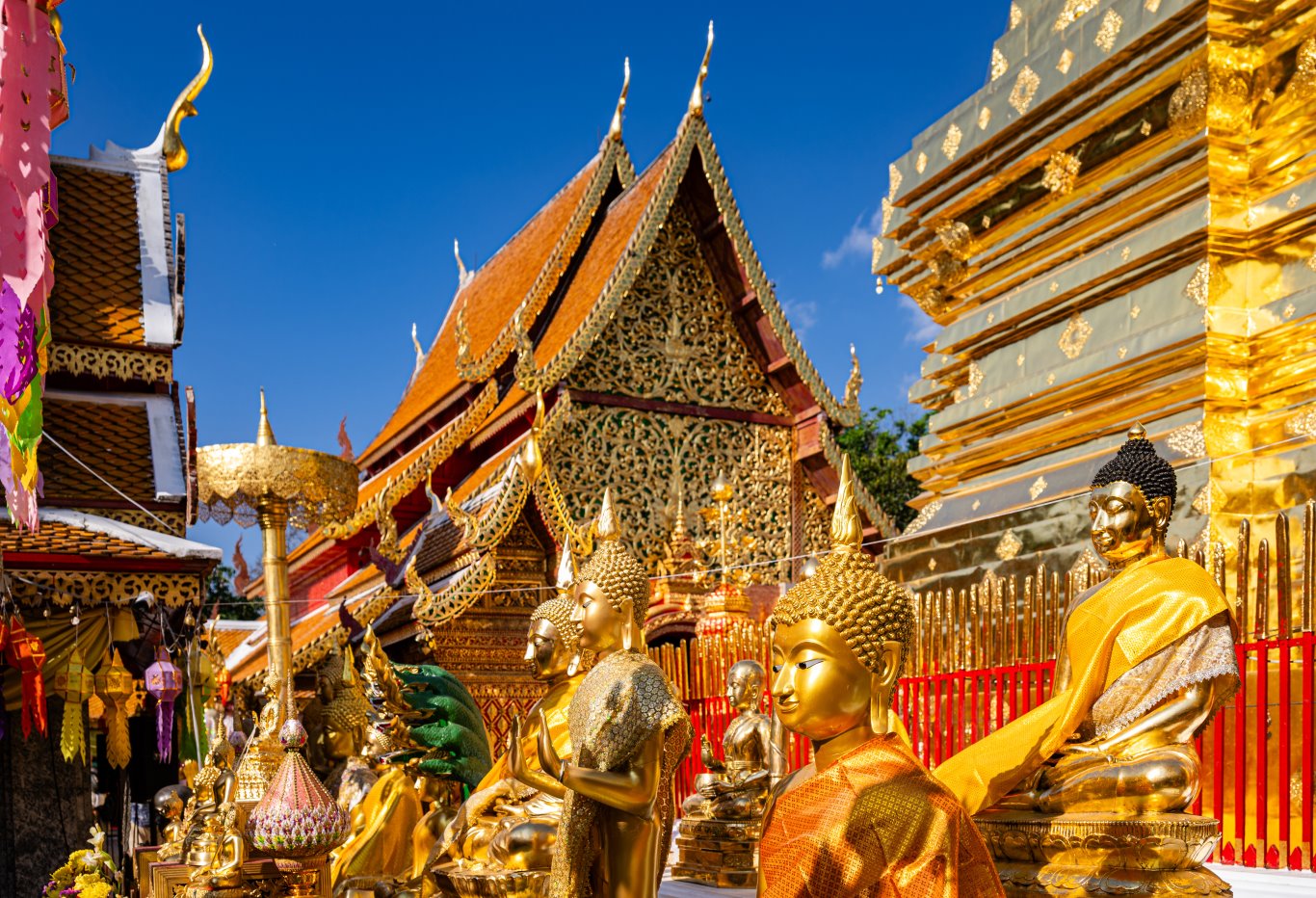 Prima colazione e trasferimento alla volta del celebre Triangolo d'oro, area dominata da un colle dalla cui sommità si gode di una magnifica vista sull'immenso fiume Mekong e il suo affluente Rak che segnano il confine tra Thailandia, Myanmar e Laos delineando una sorta di forma geometrica. Visita del vicino Museo dell'Oppio, ricco di testimonianze storiche sulla coltivazione e il commercio della sostanza stupefacente, prima della sosta successiva allo stravagante Wat Rong Khun, meglio noto come Tempio Bianco, progettato dal pittore Chalermchai Kositpipat e costruito nel 1997 ma non ancora terminato perché in continua evoluzione. L'edificio, realizzato in candido gesso, simbolo di purezza, è interamente rivestito di specchietti che, riflettendo la luce del sole, creano caleidoscopici giochi di luce. Pranzo in ristorante locale e proseguimento per Chiang Mai con visita all'arrivo, se possibile in coincidenza con i suggestivi canti serali dei monaci, del tempio più famoso della città, il dominante Wat Doi Suthep: un centinaio di gradini da salire per raggiungere la cima dalla quale si gode di un bellissimo panorama. Cena e pernottamento in hotel.